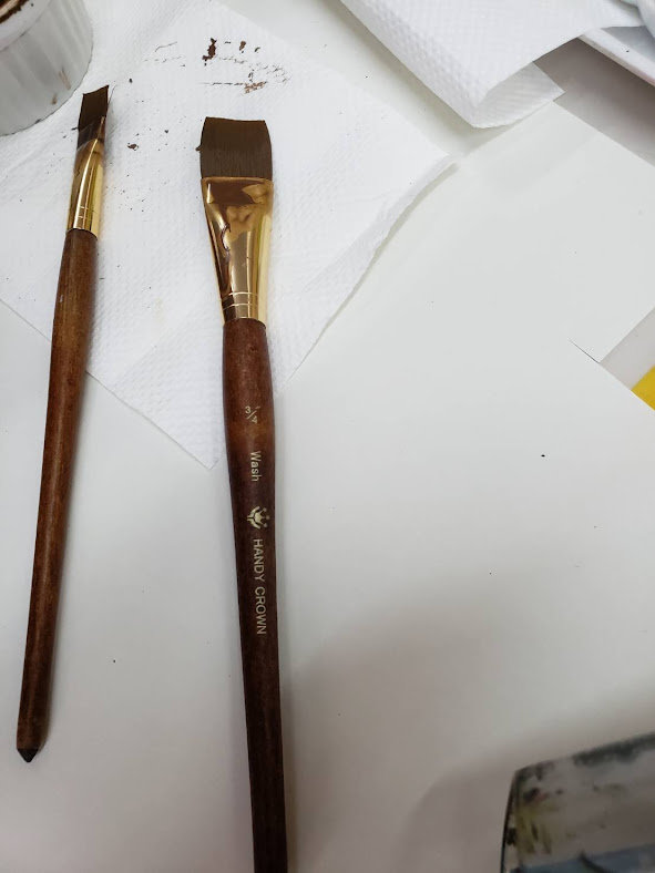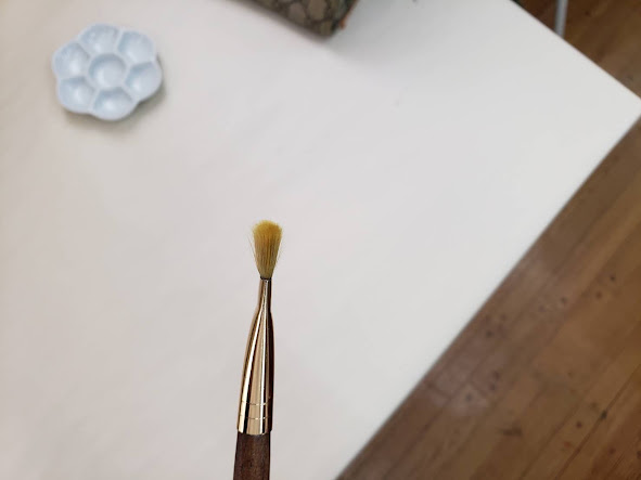 普段は、ぺんてるの青いハケを使っていますが本日は下のハケを試してみました。