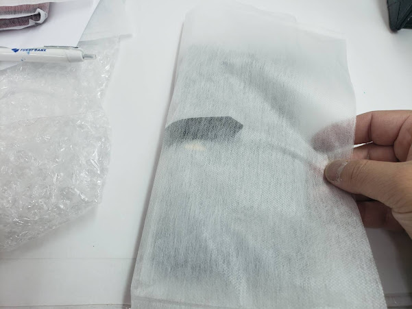 このように包むとベルトと本体の間に不織布が入り込み