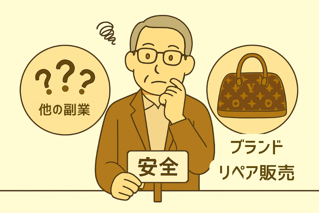 「何か副業を始めよう」と思った時、今の時代、選択肢は無数にあります。しかし、50代・60代から始める場合、若い世代と同じ戦い方をしていては、体力や時間の面で不利になることも少なくありません。ここでは、よくある副業とブランドリペアを徹底的に比較し、その「優位性」を明らかにします。